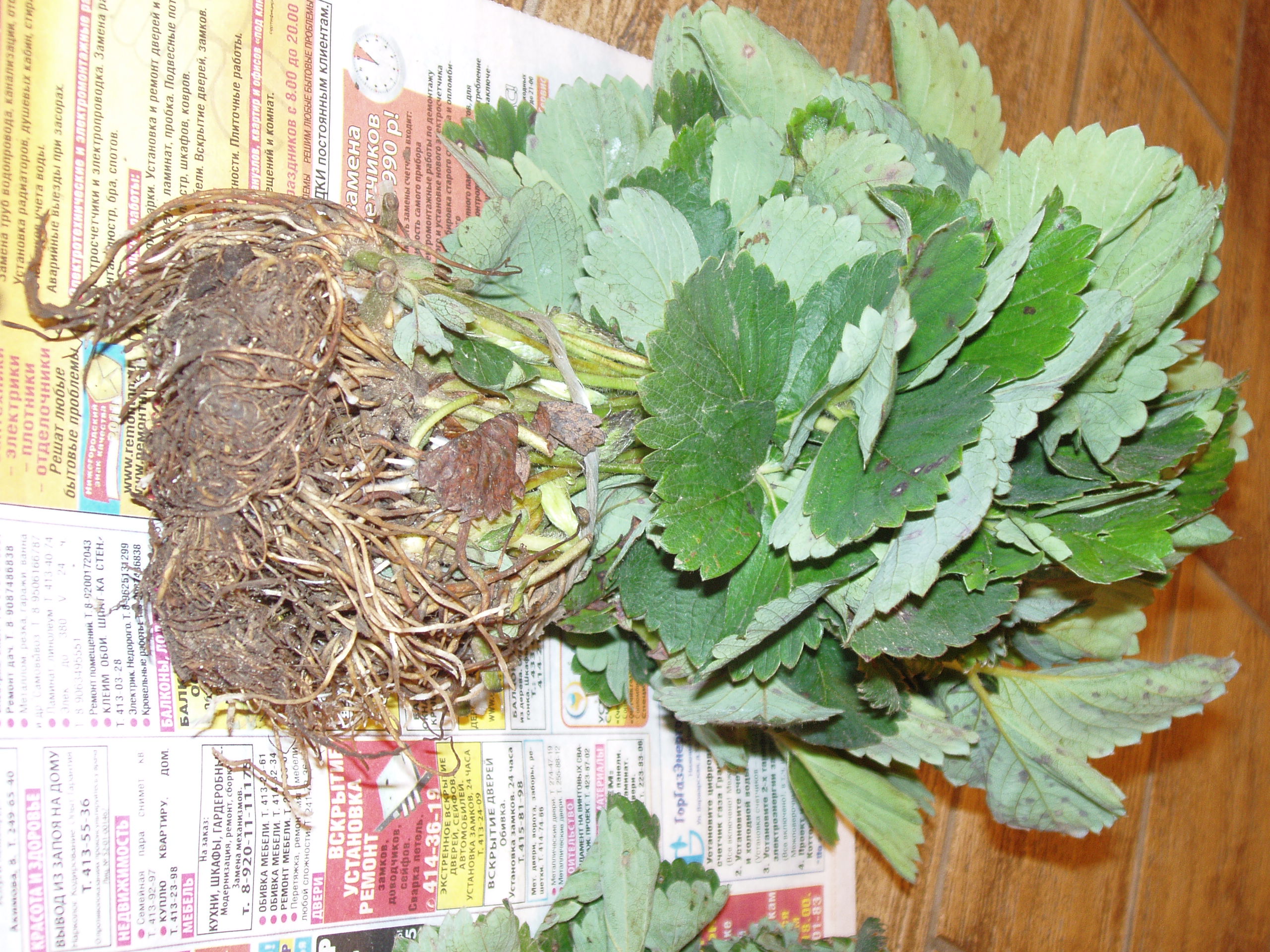 А другой был уже прикопан, у него листья погрязнее, этот из Новинок.
